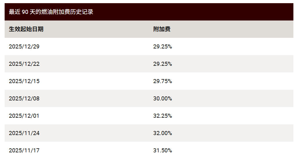2026年1月DHL,UPS,FEDEX国际快递燃油附加费更新。国际快递燃油价格变动导致运输业成本波动。因此,必须推出一项随燃油价格变动而上升、下降或取消的浮动燃油附加费。